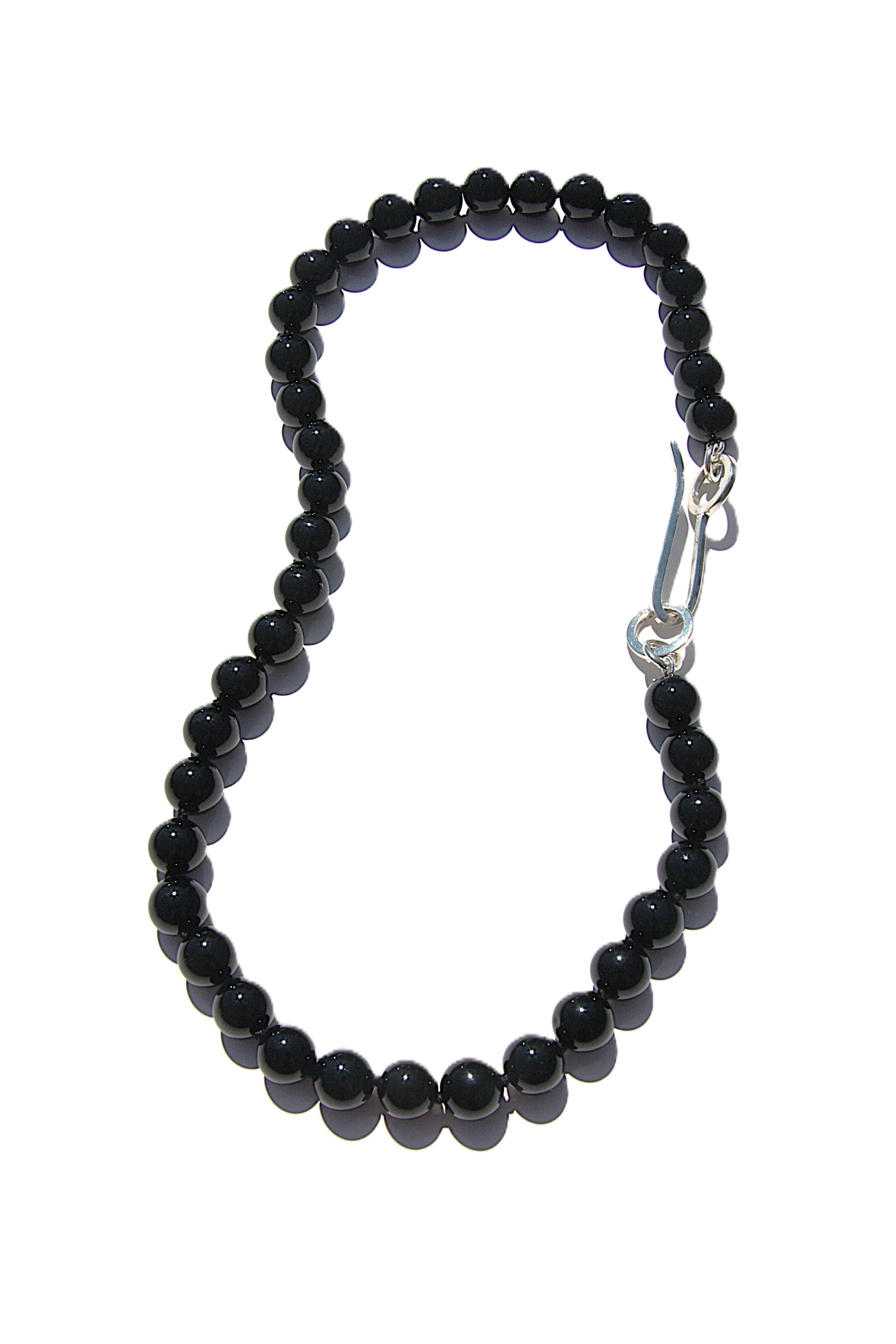 This necklace is made from knotted 10mm polished onyx beads and features a large handmade silver clasp. The clasp looks great when styled at the side. The total length is 50cm.